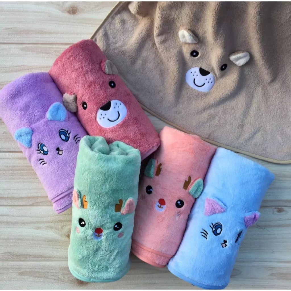 Handuk Bayi Microfiber Premium / Handuk Anak Premium Motif Hewan Kualitas Import 50 X 100 cm
